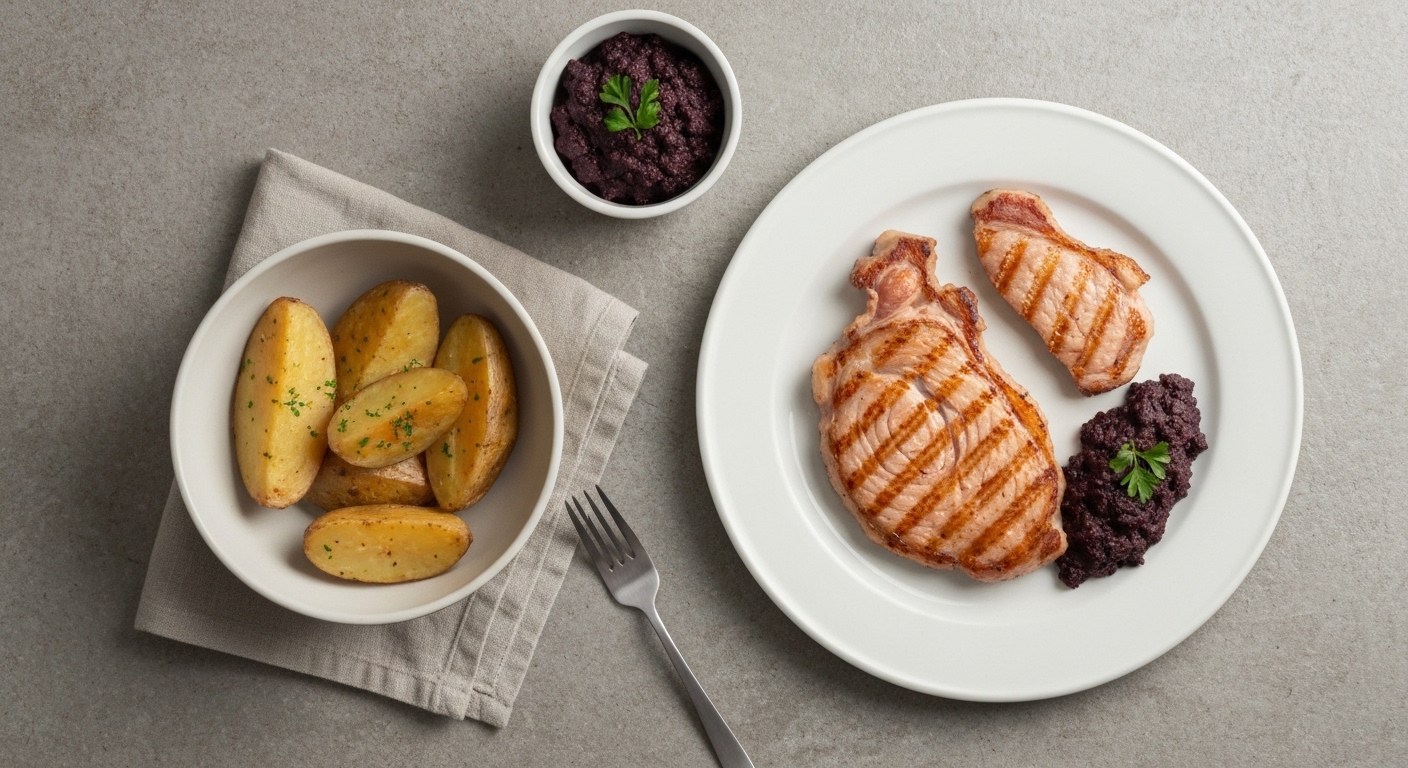 Redefina o prazer da picanha grelhada com esta versão nutritiva e cheia de sabor português. Desfrute de um prato equilibrado com batata doce assada e um feijão preto leve e aromático, ideal para quem procura bem-estar.