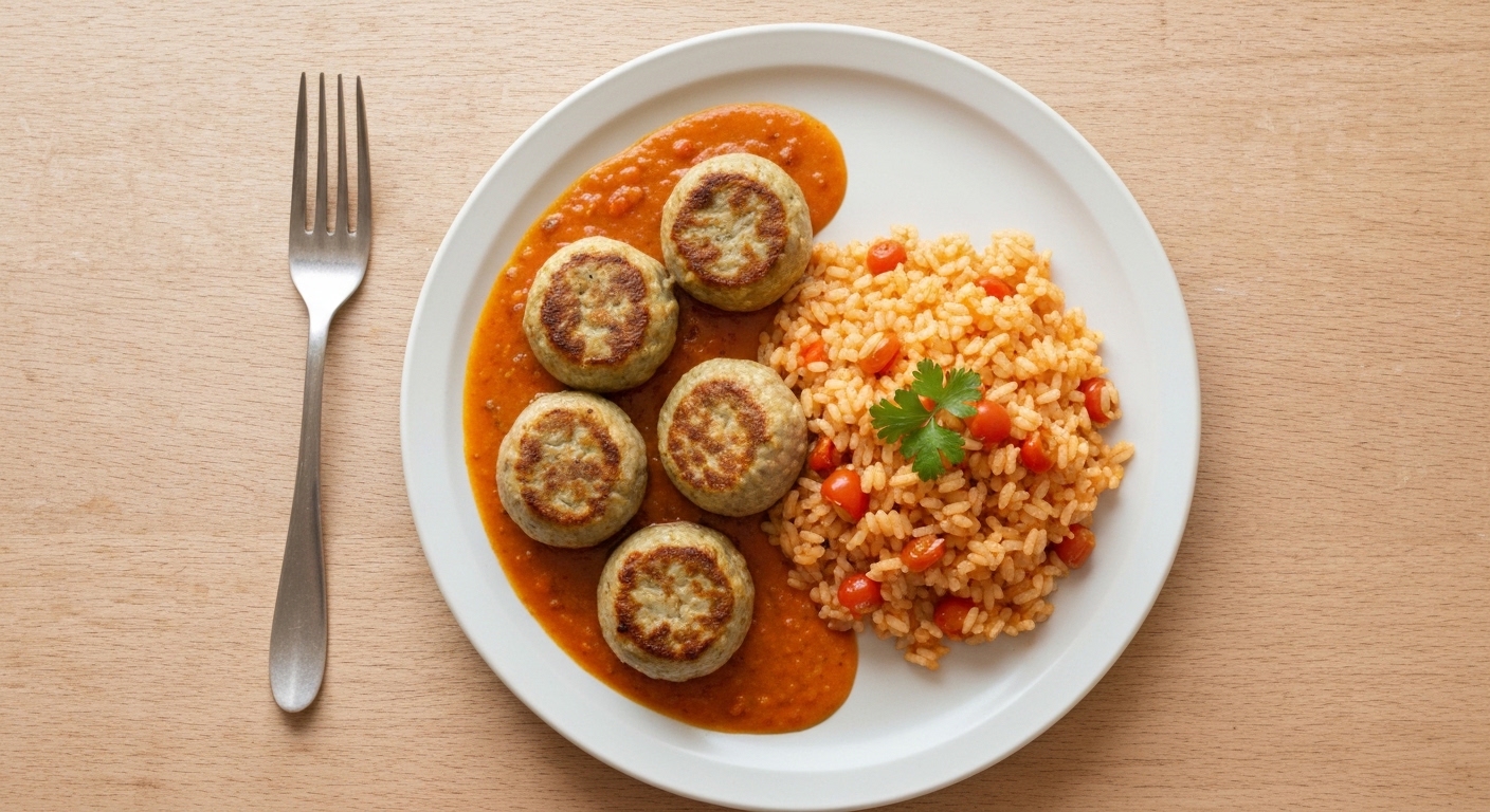 Receita Saudável de Almôndegas de Vaca Portuguesas com Arroz de Tomate Caseiro