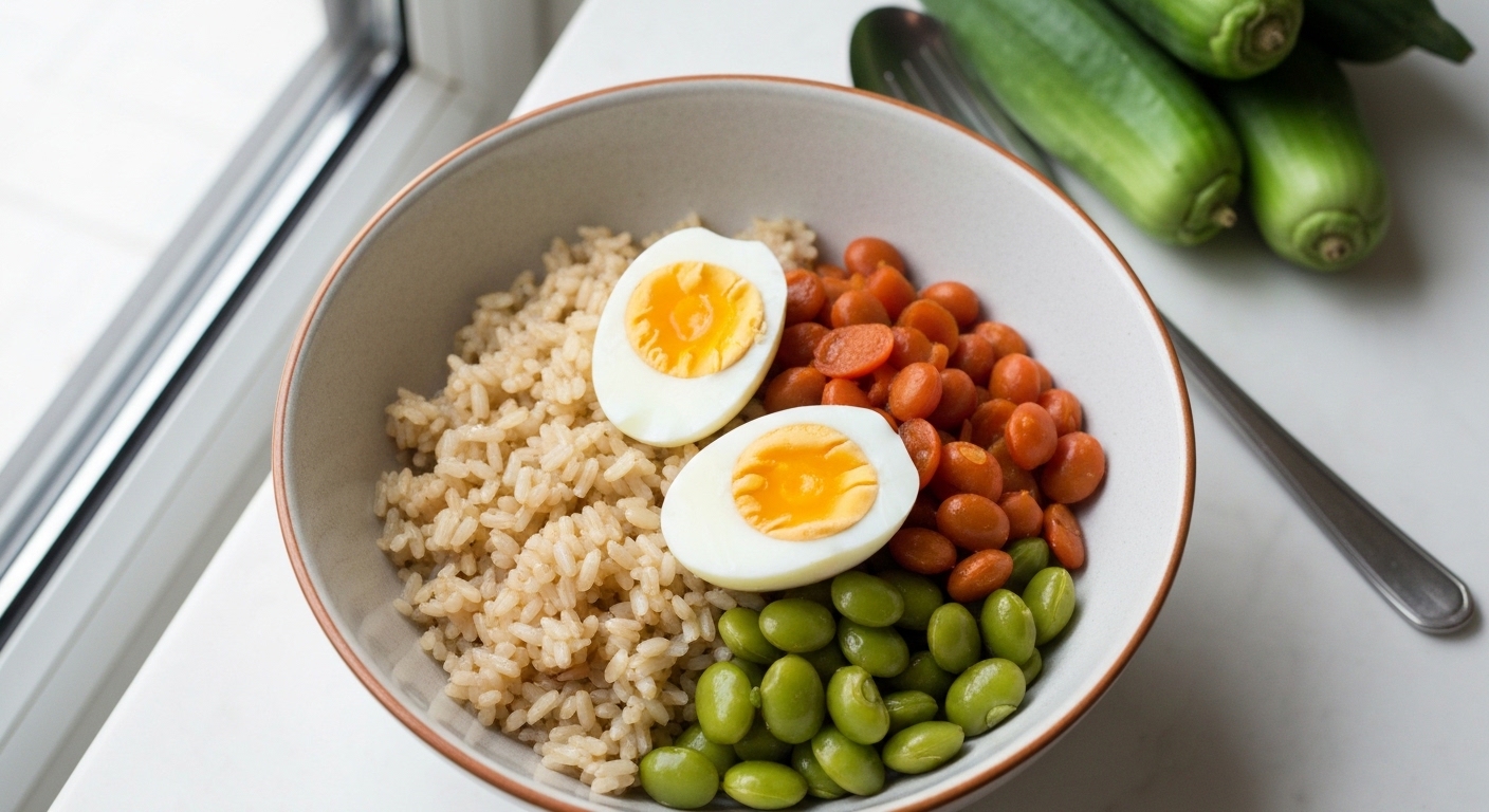 Descubra a combinação perfeita de nutrição e sabor neste bowl de arroz integral com ovo e legumes frescos, ideal para uma refeição rápida e saudável. Uma versão otimizada dos clássicos sabores portugueses para o seu dia a dia.