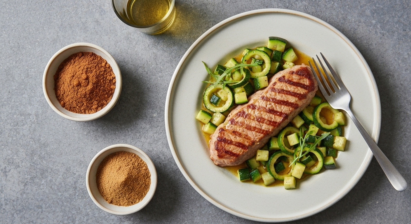 Receita Saudável: Peito de Peru Estufado com Cenoura e Courgette à Portuguesa