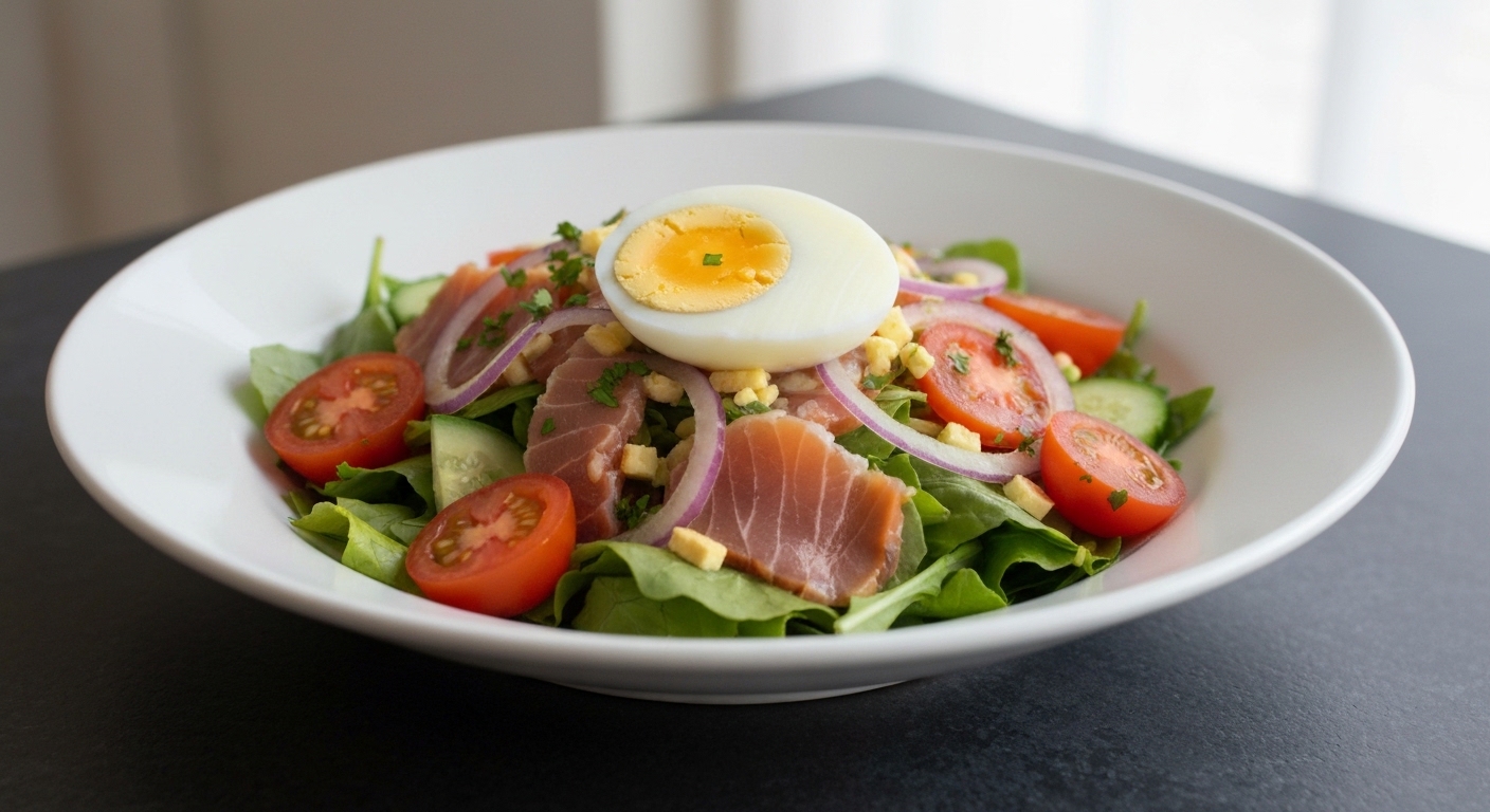 Salada Mediterrânica de Atum Fresco com Cuscuz Integral e Ovo Escalfado: A Sua Refeição Saudável e Deliciosa
